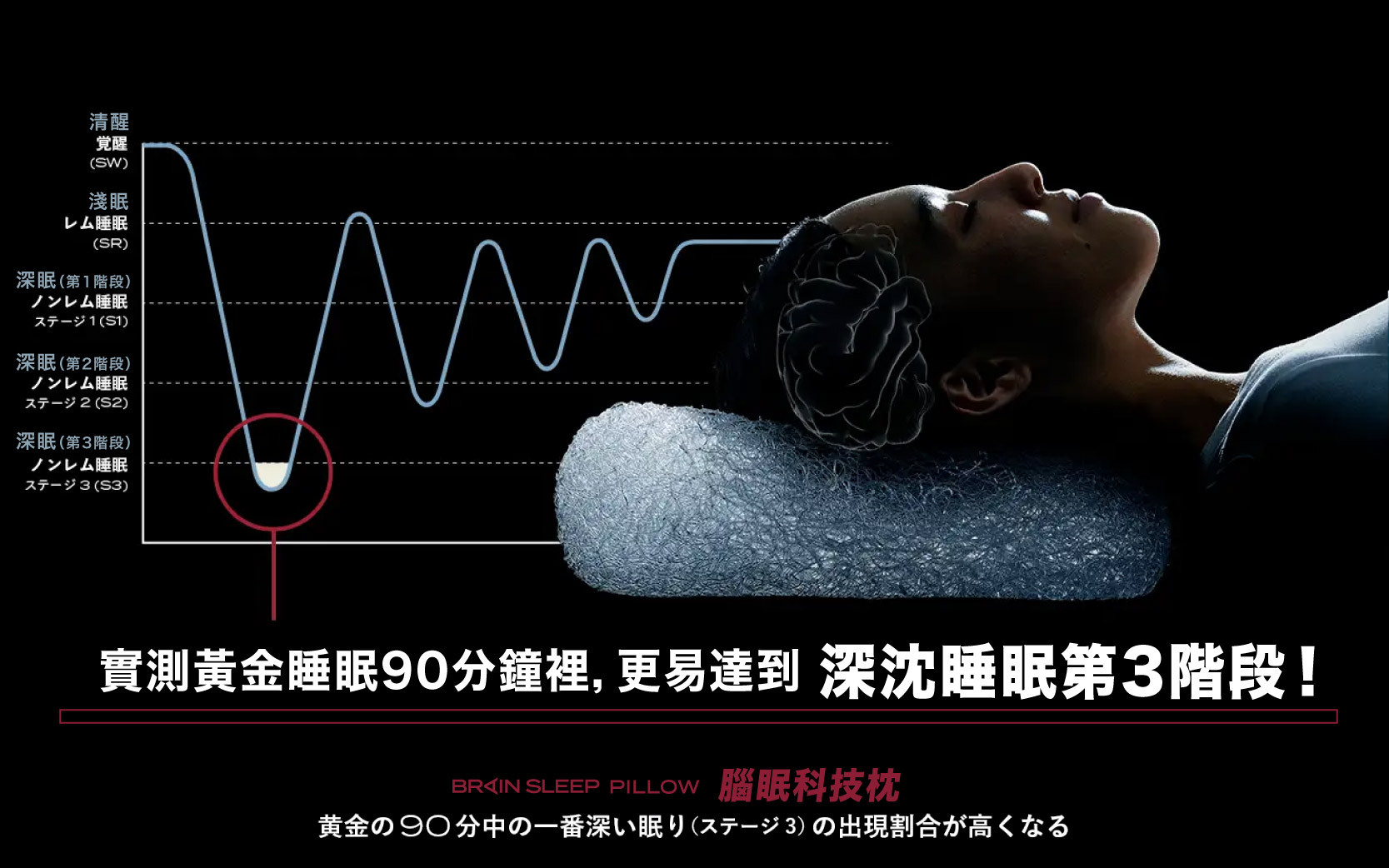 為現代人有效率休息、激發大腦潛能而研發的腦眠枕,幫助大腦開始降低整體核心溫度,把握入睡後即進入深沉高品質的「黃金90分鐘」。