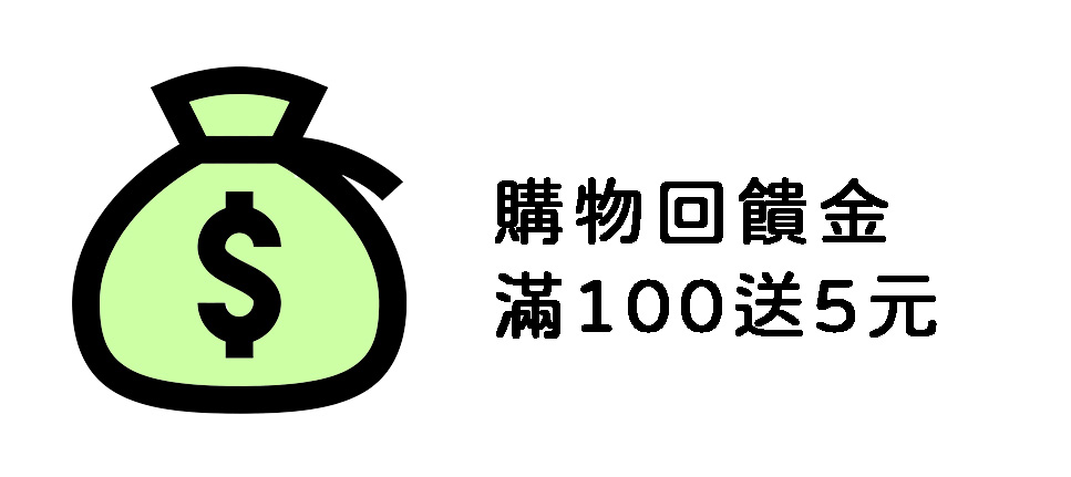 2.結帳金額每滿100元,可累積5元購物金,於下次購物時購物金可直接折抵消費金額。