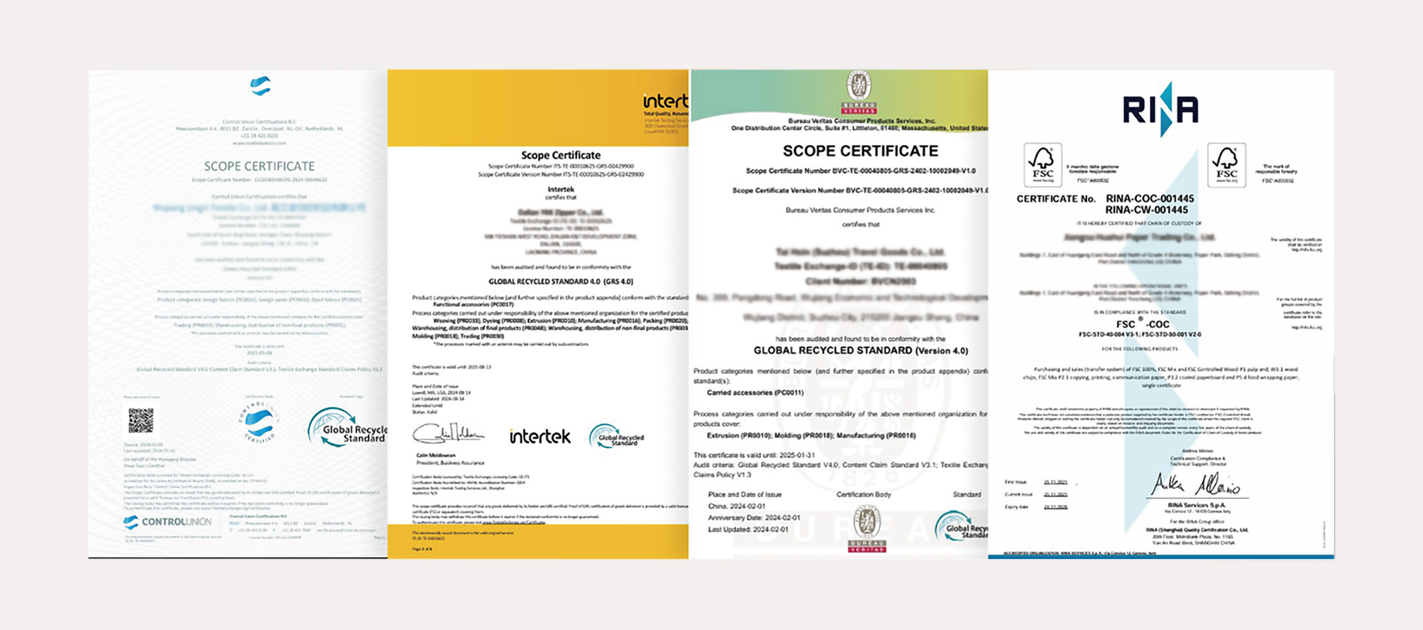 AZPAC 行李箱使用來自通過 GRS 全球回收標準認證的再生材質,從布料到拉鍊皆由符合標準的工廠製造,從紗線、織造、染整到成品製程,全程符合回收與永續規範,確保每一個零件都具備可追溯的環保來源。外箱包裝則選用 FSC 認證紙材,守護全球森林資源。 我們用行動實踐永續,陪你走得更遠、更輕盈。