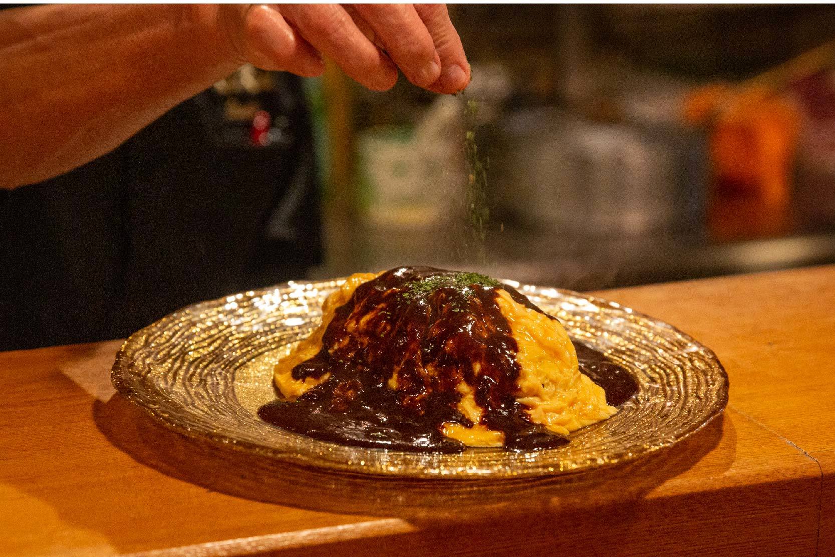 一般人難以做到這麼蓬鬆道地的日式歐姆蛋捲,輕輕切開彈嫩蓬鬆的表層,金黃半熟的內層蛋液就在熱騰騰的飯粒上盛開,醇厚香濃的蛋香美妙滋味在口中綻放~