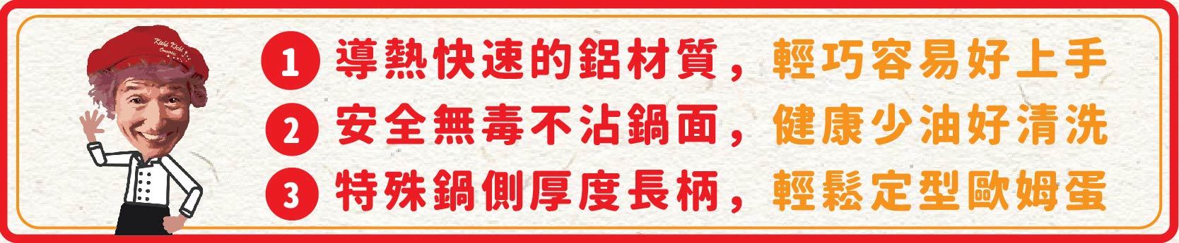 專為個人能輕鬆每日使用所設計,輕鬆製作精美大小的日式歐姆蛋捲,煎肉炒飯炒菜煮泡麵都非常適合。傾斜及較厚的邊緣,翻動甩鍋也不易灑出。不沾鍋清洗簡單又快速。