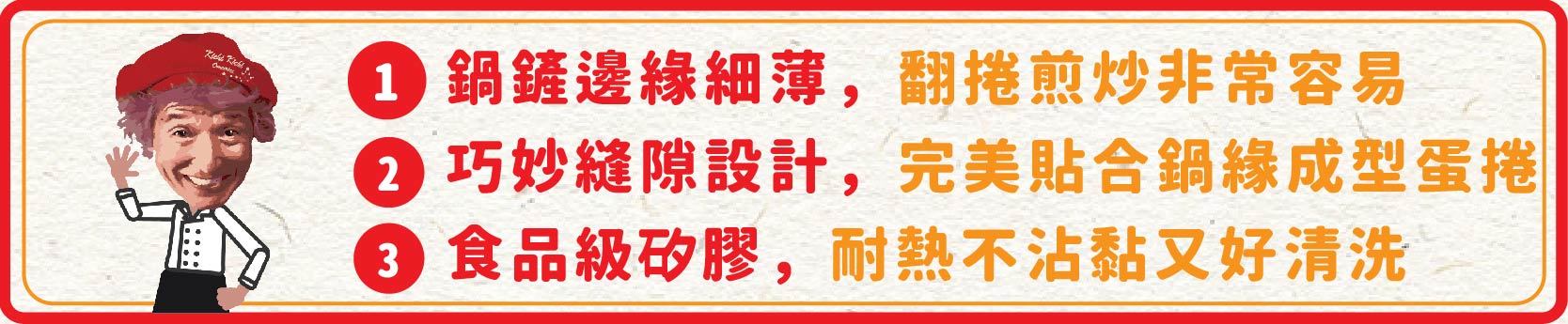 一般煎鍋若非有純熟技術難以控制,因為鍋面較大加熱面積廣、甩鍋,或想製作到底的日式歐姆蛋,半熟的蛋液較難集中成型,很難製作出完美的蛋捲。