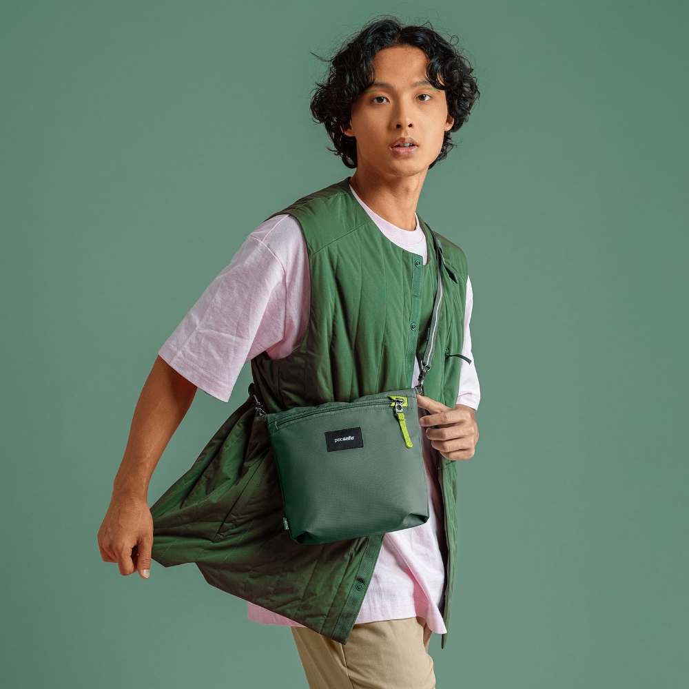 Pacsafe GO 防盜斜背收納包只需拆下背帶,就能輕鬆變身為旅行收納包。不論是用來收納電子配件、充電線和小物,還是抵達目的地後化身為隨身斜背包,隨時切換、靈活實用。GO 系列透過防盜安全和輕鬆的功能開啟冒險和可能性。包包由5個寶特瓶再製,實踐環保同時也保有功能與時尚。