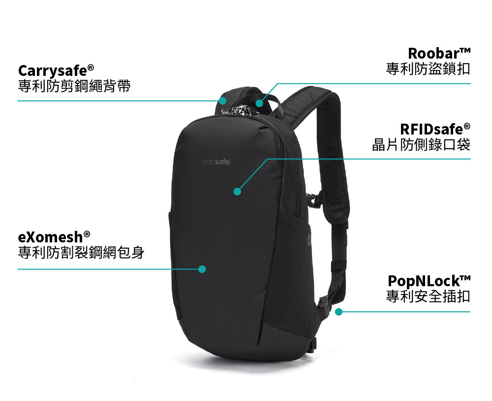 • 防潑水面料,100% 不含 PFC 有毒材料
