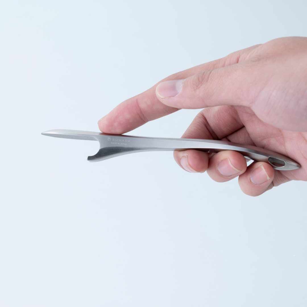 這款清酒開瓶器採用原創設計,透過技藝精湛的工匠的拋光技術,展現了不鏽鋼固有的美感。