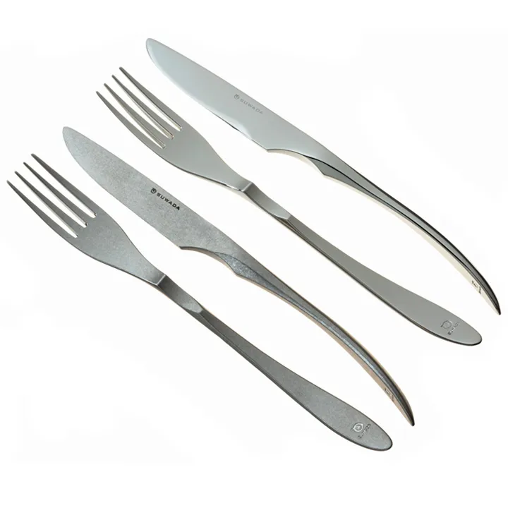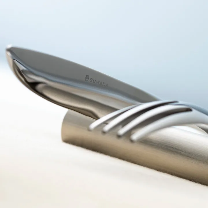 SUWADA 職人打造的專用牛排餐具組,包含刀、叉與餐具架三件套。