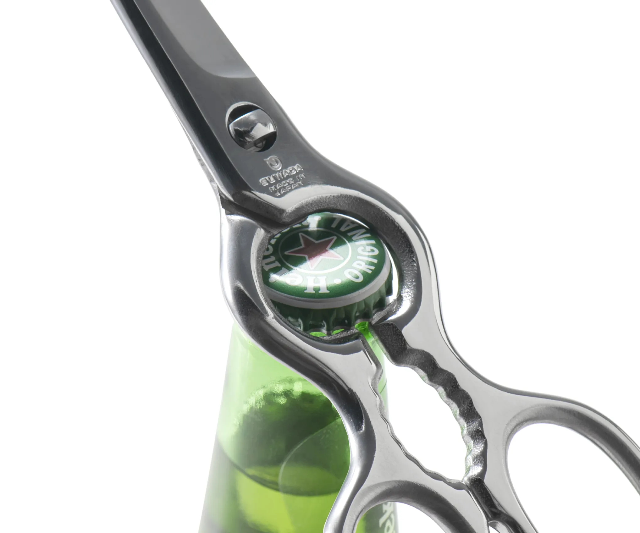 剪刀中央可作為開瓶器使用,下方的凹凸可用來打開硬瓶蓋,手柄末端的突起則能輕鬆撬開罐頭蓋。不僅切割鋒利,功能性也同樣出色。