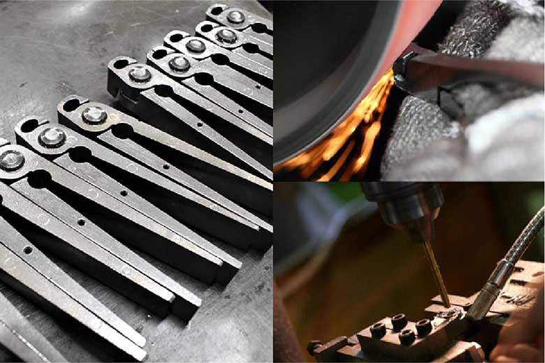 由職人挑選成型後的零件作精細調整、鑽孔、研磨、切削,使用粗細大小不同的砂紙,一點一點仔細拋光。許多細節將會影響最後使用時的舒適程度及美觀,非常考驗職人的技術與審美力。最後的合刃及開刃的步驟,僅有非常熟練的職人才能完成。使用金剛石精確打磨鋒利,直至左右刀刃完美合在一起,甚至不透過一絲光線。