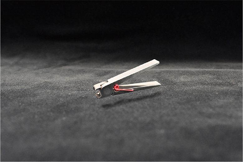 波提指甲剪 並非單純縮小「鉗形指甲剪」的造型而已。支點與受力點的距離、握持時施加的壓力,直接影響操作時的手感。經過無數次設計和打樣,才將握持感與刀刃剪切體驗達到絕佳平衡。非常考驗負責「合刃」工序的職人,將面刃打磨至極限,堅固又不脆裂。用很輕的力道,就能清晰確實剪下厚指甲。