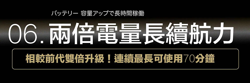 不僅提供更強更效率的高壓洗淨力,連續使用時間最長可達到70分鍾,顛覆過往對無線高壓清洗機的印象。
