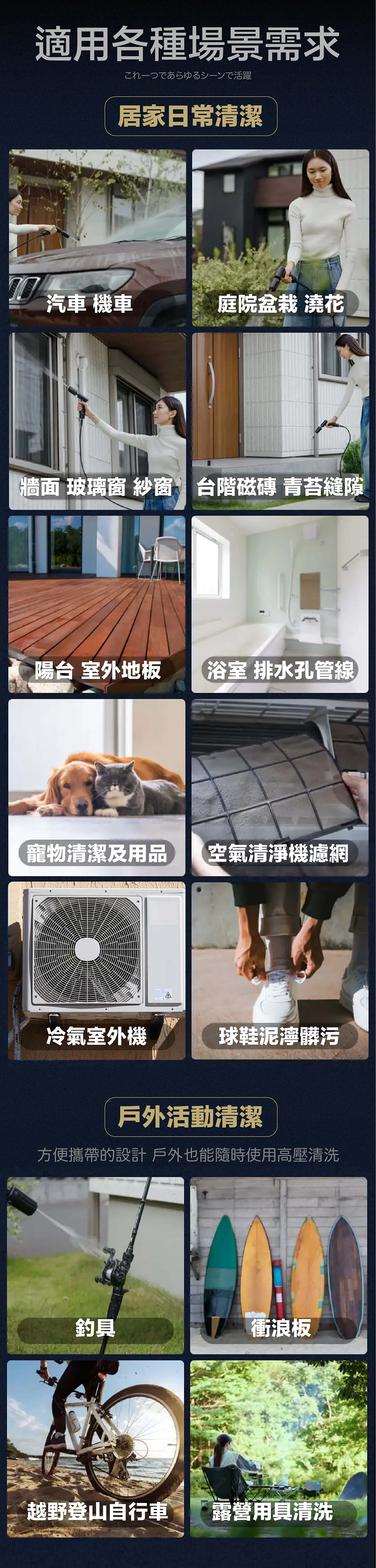 市面上的無線高壓清洗機,電力續航和出水力弱,完全無法洗淨髒污。